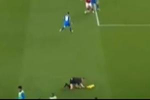 谁干的边裁跑动时撞上在边线热身的药厂替补,狼狈摔到场内
