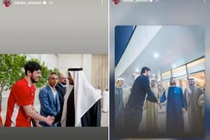 但阿兹蒙还是在社媒上晒出了与阿联酋领导人本·拉希德和本·扎耶德的合影,并配文:“能够见到世界上最成功的头脑之一,我感到无比荣幸和喜悦。”