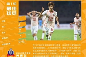 官方:黄振飞当选中甲第1轮最佳球员,双响+世界波助延边龙鼎取胜