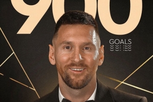 金球奖官方写道:“职业生涯900个进球,里奥·安德烈斯·梅西,偶像。”