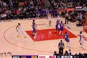 努力追赶!杜兰特送妙传 阿门篮下起飞背筐打中