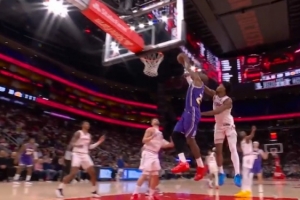 还得你来!里夫斯送助攻 詹姆斯空接扣篮打成2+1