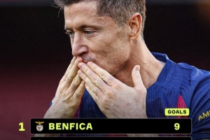 被莱万在欧冠赛场破门最多的球队:本菲卡9次,红星7次,皇马6次
