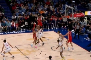 神来之笔!费尔斯运球对抗后脱手 随手一撩球直接掉进篮筐