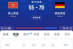 一节花!德国男篮第三节净胜黑山21分 三节打完握有24分优势