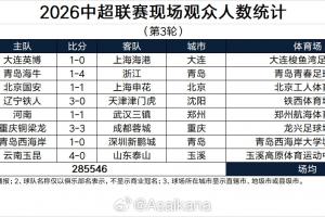 体育资讯03月21日讯 德转亚洲区管理员朱艺统计了中超第3轮的上座情况,8场比赛现场观众总人数高达285546人,场均35693人,创造中超单轮上座人数新纪录!此前纪录为2016赛季第2轮的265539人。