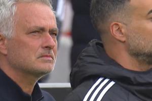 默哀期间,穆里尼奥不禁情难自已,眼眶泛红。
