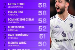 体育资讯3月24日讯 本赛季,曼联队长B费在创造机会方面有着上佳表现。根据Squawka的数据统计,葡萄牙中场在英超共创造101次机会遥遥领先,斯塔赫、赖斯和索博斯洛伊以58次并列次席。