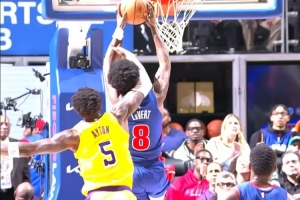 有点危险!勒维尔飞身欲扣遭艾顿从身后抡翻 后者吃一级恶意犯规