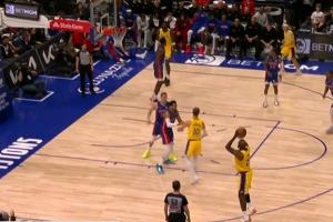 太危险了!阿努诺比扣篮被基斯珀特犯规拉下 前者重摔倒地