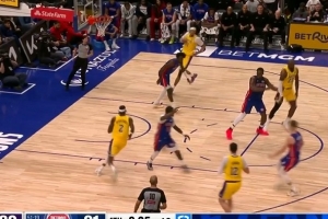 太帅了!詹姆斯不看人跳起击地炸传范德比尔特暴扣