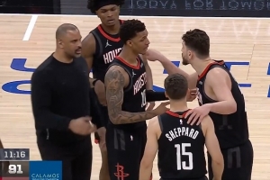 努力追!谢泼德强攻得手追到4分 随后申京集中起来喊话队友