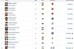 全球中卫身价排名:昔日第一巴斯托尼跌第四,萨利巴9000万世一卫