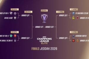 亚冠联赛自去年起改制,8强阶段东亚大区和西亚大区打乱交叉对阵。亚冠精英联赛自1/4决赛起,全部7场单场决胜赛事,将于4月16日至25日在沙特阿拉伯吉达进行。