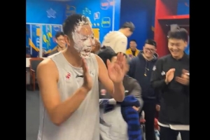 保留节目!北京队赛后为翟晓川庆生 无悬念被摁头吃蛋糕了