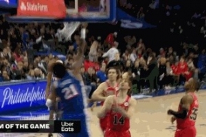 身体状态不错!恩比德低位转身杀入内线完成暴力隔扣!