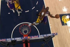 没有圆柱体!詹姆斯反击接球 对抗防守滑翔上篮命中