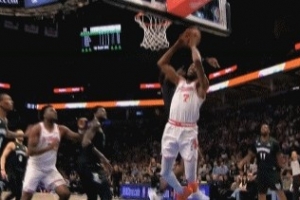 没有哨!杜兰特冲击篮筐 遭麦克丹尼尔斯起飞帽翻