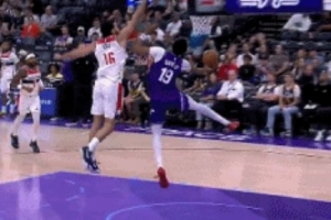 参加明年扣篮大赛吧!贝利快下接球迎着防守 跨步大翻身劈扣