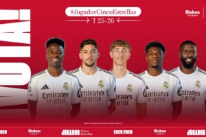 皇马月最佳候选:维尼修斯、巴尔韦德、赫伊森、琼阿梅尼、吕迪格