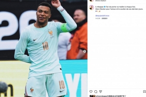 体育资讯3月27日讯 足球友谊赛,法国2比1击败巴西。其中姆巴佩打进1球。赛后,姆巴佩更新社媒表达身披国家队球衣征战的自豪。