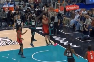 太硬了!申京转身突破强杀内线 1V2再度隔扣GG·杰克逊