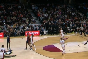 神来之笔!骑士1.3秒后场发球 莫布里助攻埃利斯超远三分压哨命中