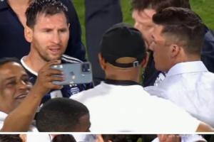 都想合张影!梅西赛后被对手代表团围住,在护送下才得以离开球场