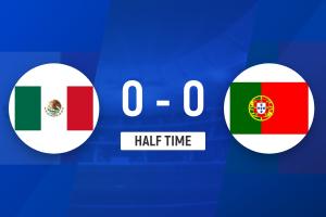 上半场补时2分钟,墨西哥0-0葡萄牙。