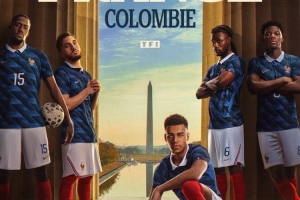 法国队发布对阵哥伦比亚海报:杜埃、谢尔基、卡马文加出镜