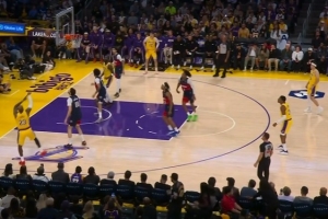 开场状态不错!詹姆斯滑翔拉杆上篮&翻身跳投得分