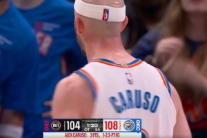 这冠军3D啊!亚历山大分球 卡鲁索底角三分致命一击&雷霆领先4分