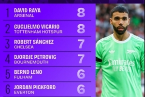 拉亚、维卡里奥8次并列本赛季英超扑救榜榜首,且两人还未丢球
