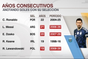 据ESPN数据统计,梅西已经连续21年在代表国家队出战时至少打进1球,他也超越了波黑中锋哲科的连续20年,排在第二位。