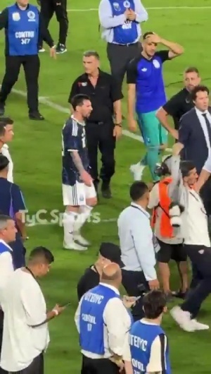 TYC体育报道,为了防止赞比亚像在此前毛里塔尼亚球员那样接近梅西,安保人员将他围住,梅西有些不满向安保示意。TYC体育表示,梅西看上去要求有一些个人空间。