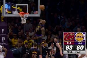 君临天下!湖人防守反击 詹姆斯接里夫斯高抛单臂空接轰炸篮筐