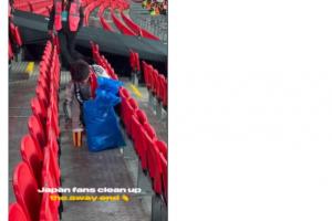 赛后温布利球场官方晒出视频,致谢日本球迷清理球场的垃圾。