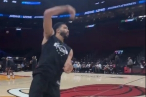恐怖的力量!塔图姆半场闲庭信步 超超超远勾手精准入筐!