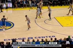 41分平赛季最高!文班亚马持球强打 翻身打板中投命中!