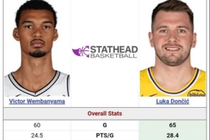 22岁文班场均24.5+11.4+3.1帽 22岁东契奇28.4+9.1+8.7+MVP第5