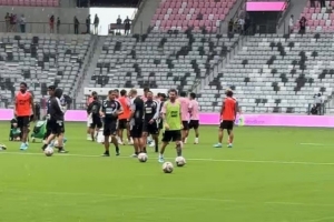 美职联官方更新社媒动态,晒出梅西等迈阿密国际球员在新主场训练的视频,迈阿密国际老板贝克汉姆也来到球场观看训练,并与梅西交流。