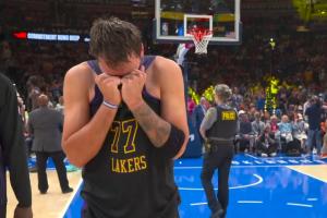非常沮丧!东契奇脸部通红 扯着球衣捂脸!