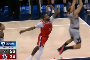 太可怕!卡特·布莱恩特补篮得手 马刺出场球员全部得分&领先22分