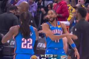 狂轰滥炸!以赛亚·乔帽子戏法三分3连击 雷霆领先湖人38分
