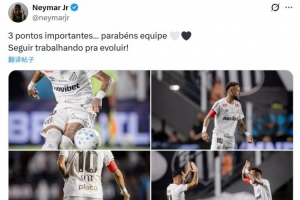 内马尔在社交媒体上晒出比赛照片,配文:“拿下重要三分,恭喜全队。继续努力,不断进步!”