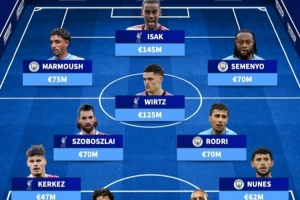 德转盘点利物浦、曼城现役最贵引援阵容:伊萨克、维尔茨2人上亿