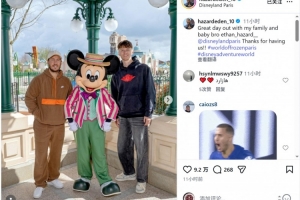阿扎尔与弟弟伊森·阿扎尔在巴黎迪士尼乐园游玩,阿扎尔社媒晒出合照,配文:“与我的家人和小弟伊森一起度过了美好的一天,感谢巴黎迪士尼的款待!”