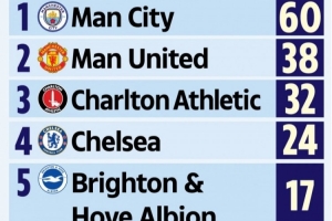 60次拦截远高于第二名的曼联(38次),英冠球队查尔顿以32次位居第三,切尔西(24次)和布莱顿(17次)位列前五。这项针对英格兰和威尔士警方数据的研究发现,2025年足球比赛中总共发生了386起毒品截获事件。被缴获的毒品包括可卡因、大麻、氯胺酮和摇头丸,但由于43支警队中只有19支作出了回应,实际数字会高得多。