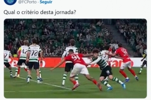 波尔图官推晒出葡萄牙体育球员犯规没被判罚的照片,并写道:“本轮比赛的判罚标准是什么?”