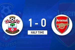 半场-阿森纳0-1圣徒 本怀特送礼斯图尔特破门莫斯克拉关键防守
